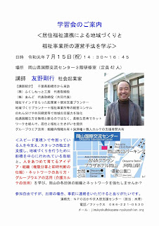 目から鱗の話が聞けると思います。それぞれの事業所の取組を強化し、岡山の居住福祉の連携を強化して、楽しさと生きがいを提供できるように変えていきませんか。